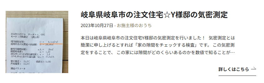 他の住宅での気密測定結果については、こちらのコラムでもご紹介しています。