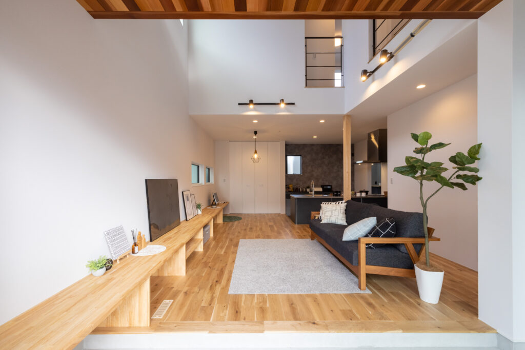 リビングにいながら外とつながっているような土間のある空間は、庭でバーベキューを楽しみたい!との思いでできた間取り。