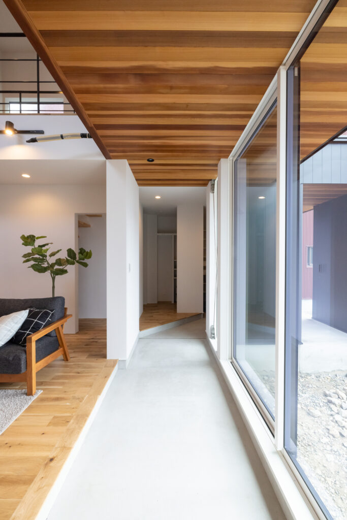 エアコン一台で家じゅうが暖かく涼しいため、ドアがほとんどない見た目にも機能的にも住む人に嬉しい家になりました。