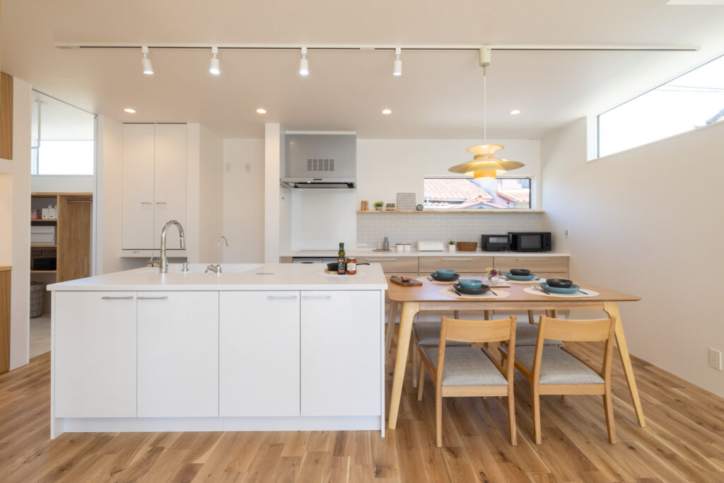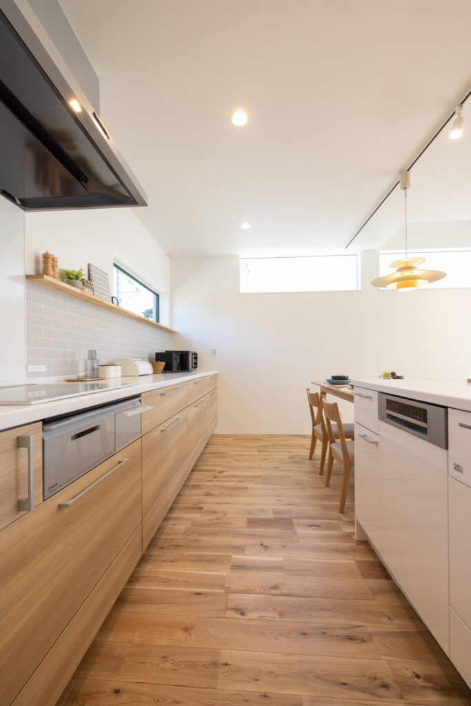 玄関から2WAYでアクセスできるシューズクロークとクローゼットは、洗面・脱衣との行き来のしやすい家事動線を考える家に。