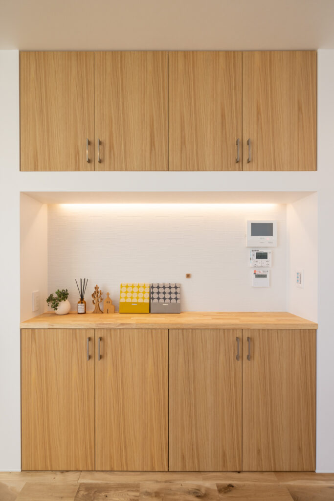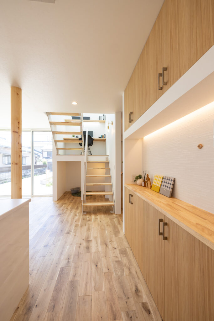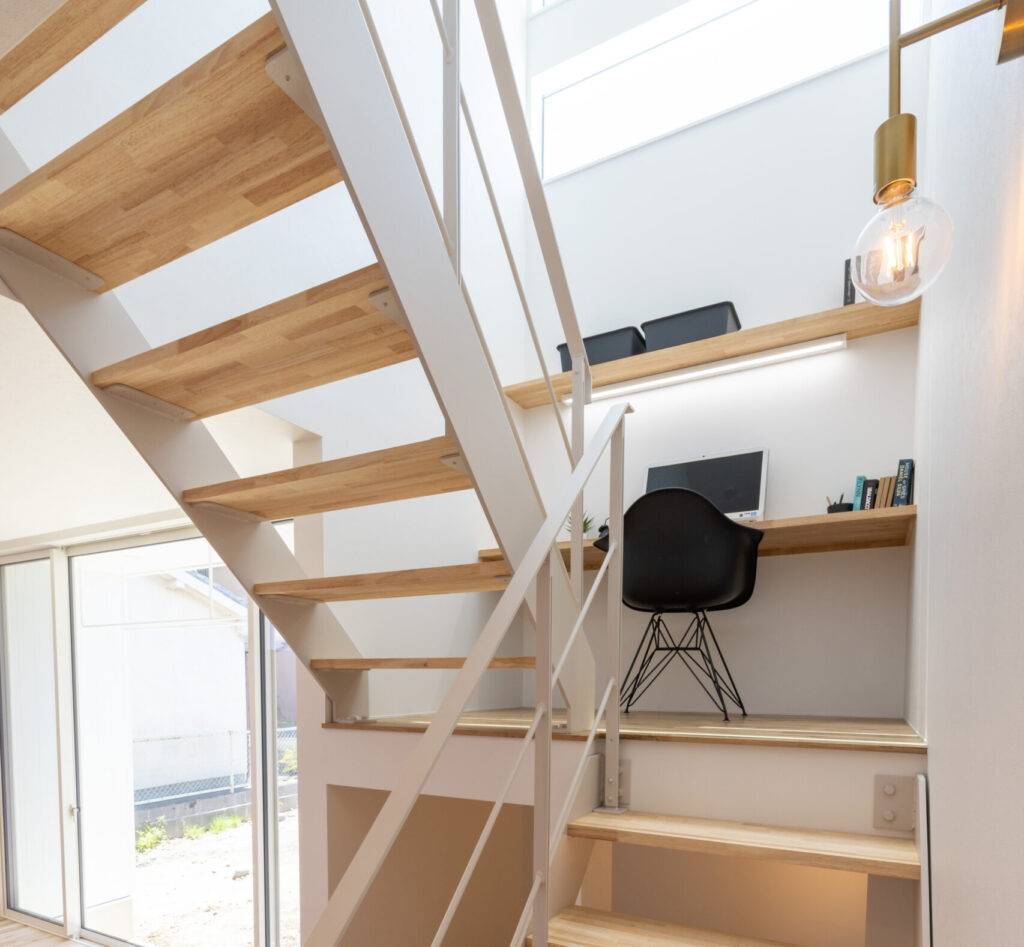 階段の踊り場を使ったワークスペース、その下のキッズスペースなど注文住宅ならではの遊び心のある間取りになりました。