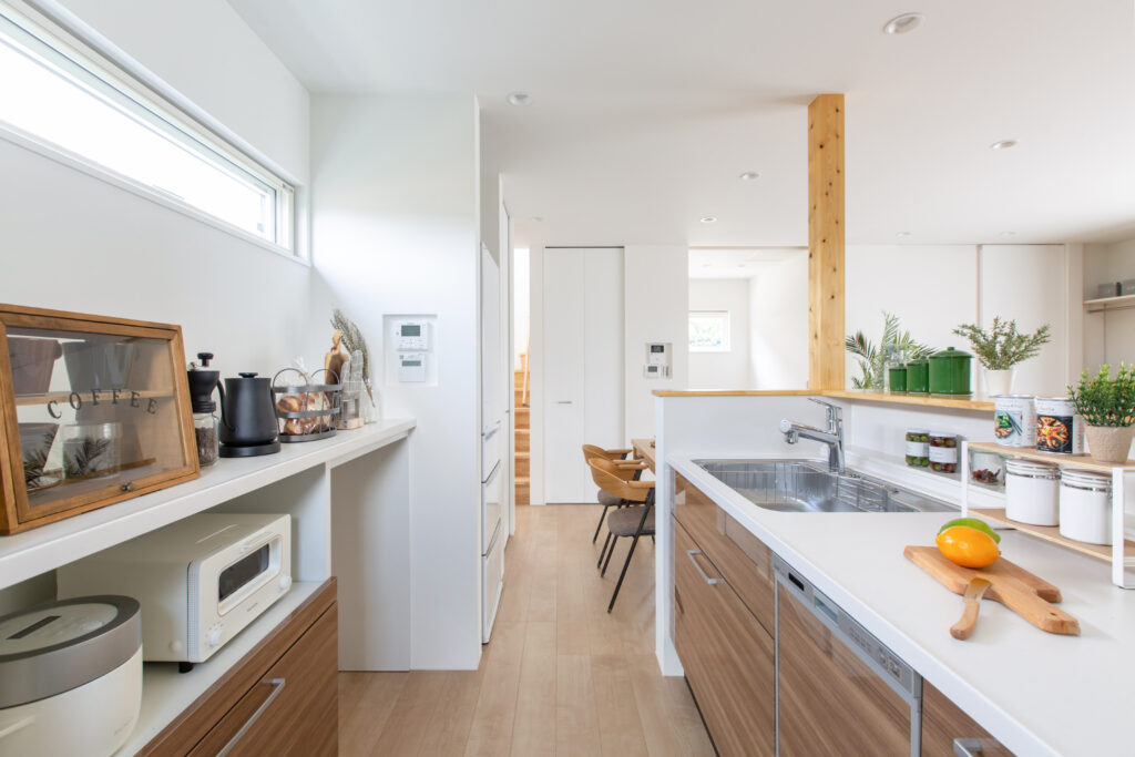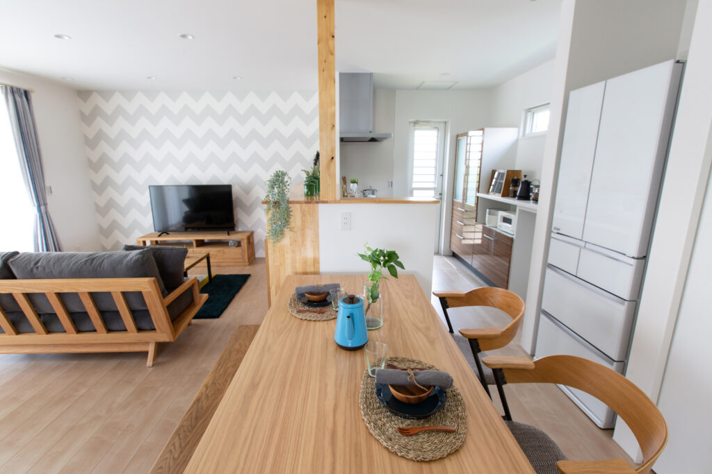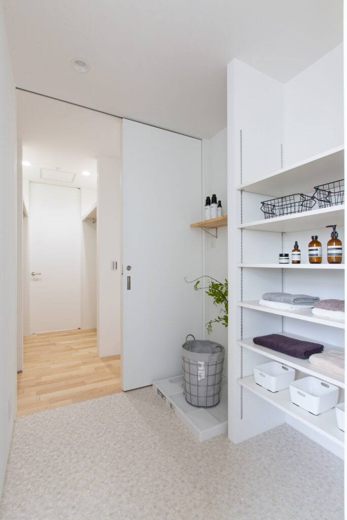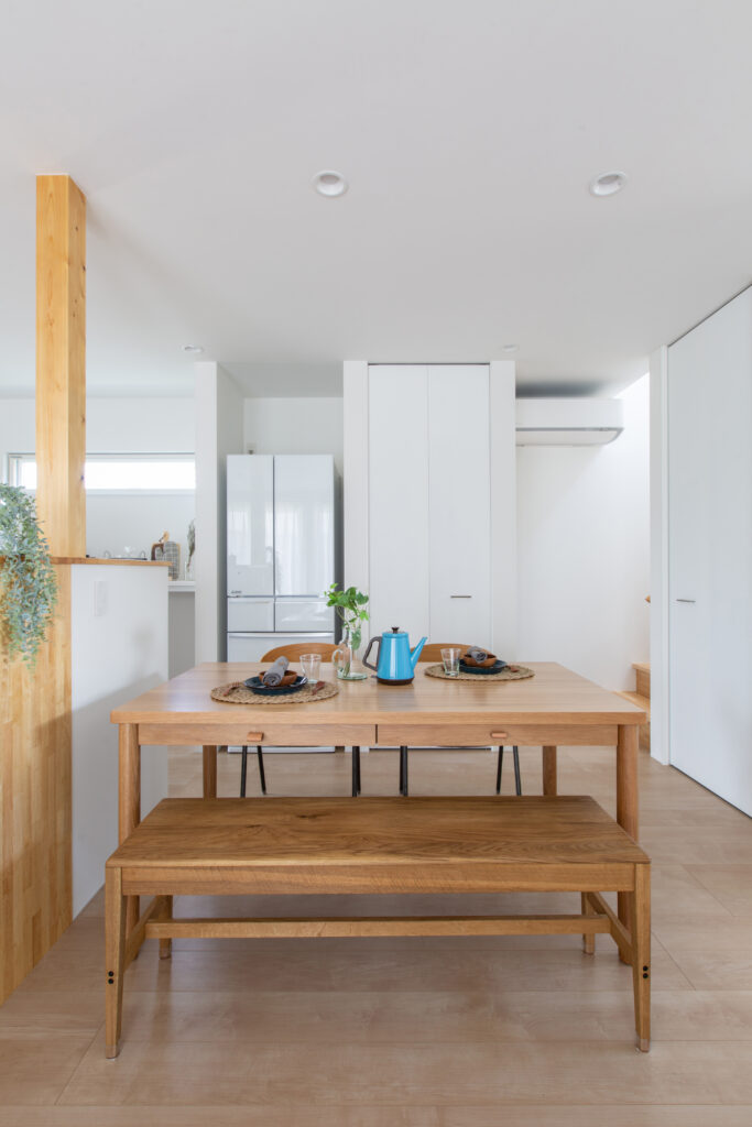 子供にのびのびと走り回って家にいる時間を楽しんでほしい!という ご夫婦の想いがカタチになりました。 2階にファミリークローゼットや浴室を配置することで 1階部分を広く開放的にすることが可能に。 来客が多いご夫婦のこだわりの空間となりました。