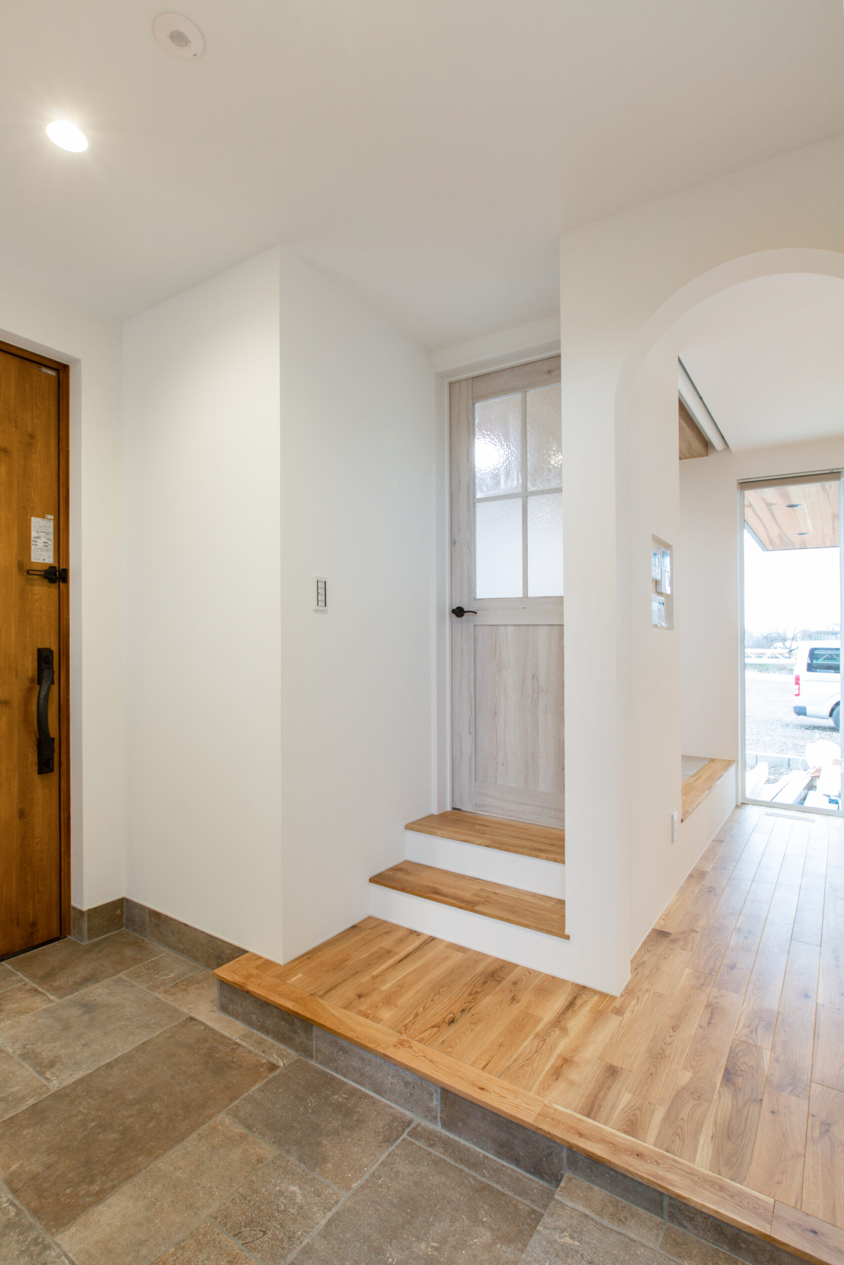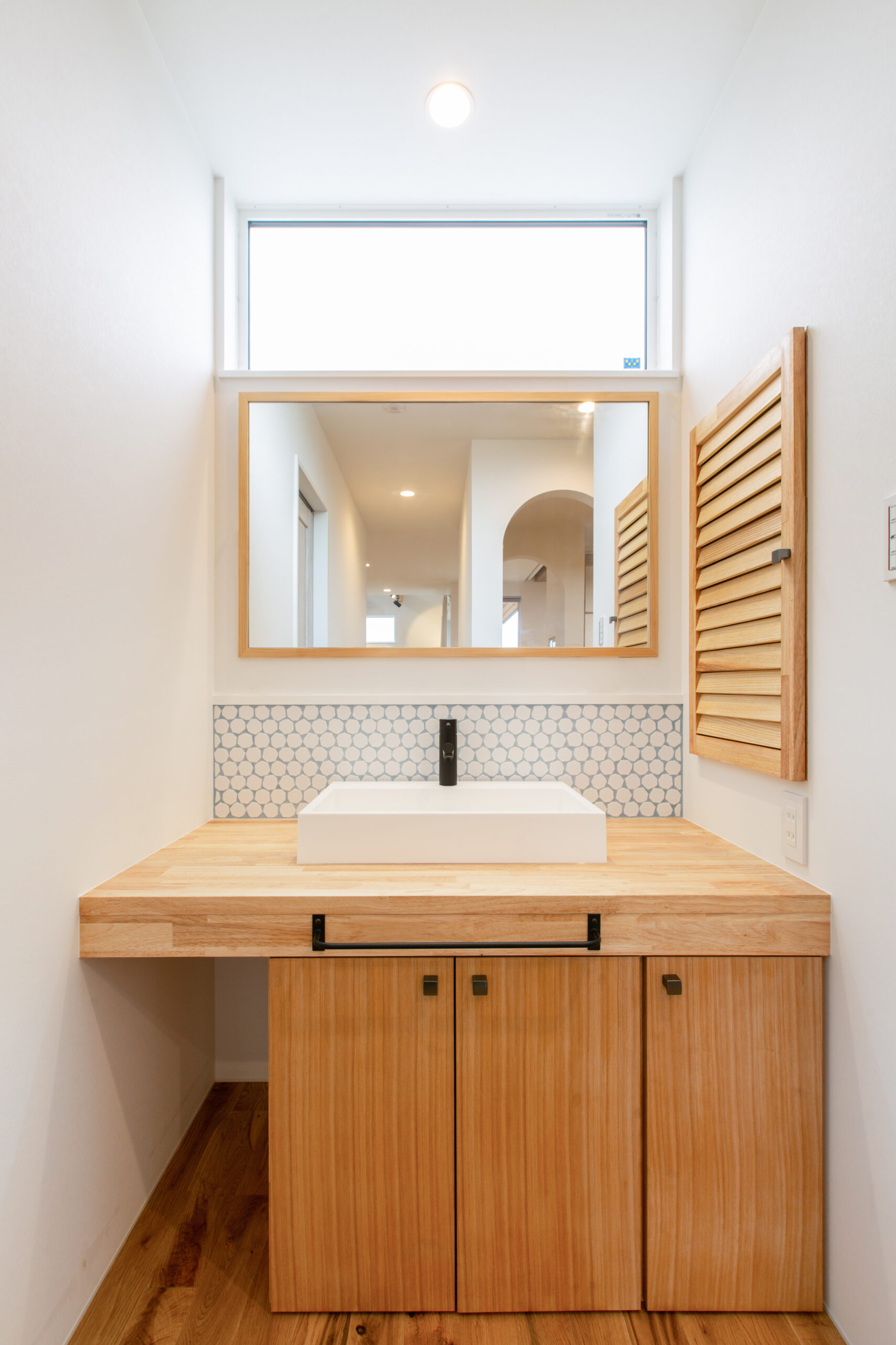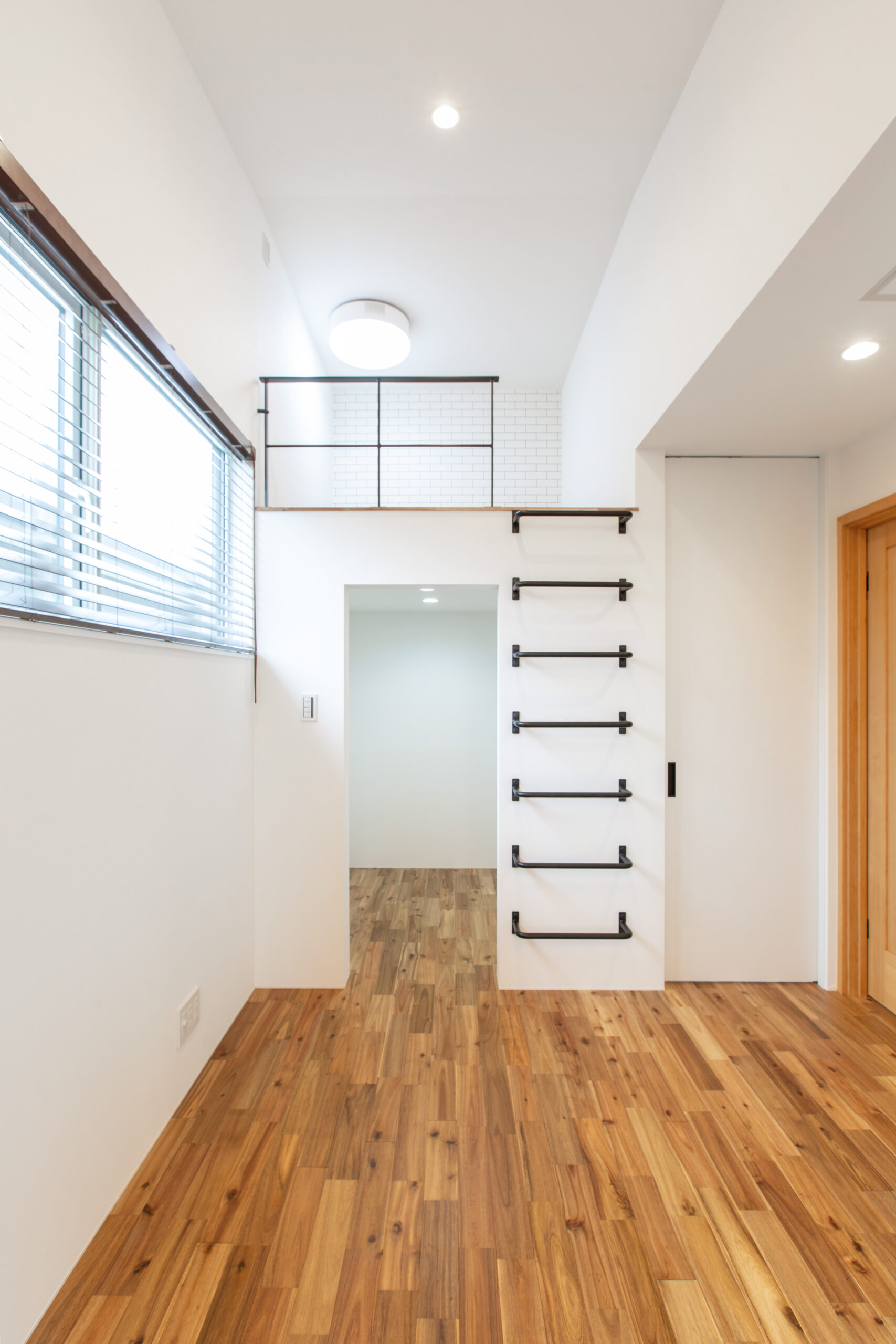 玄関を入ってすぐの和室に来客を通し、ロールスクリーンで仕切ることでリビングとの境界を持たせました。 2階に設けたセカンドリビングで、来客時や家族それぞれの時間を過ごす時にもくつろぐことができるように配置。 回遊できる水回りとクローゼットで家事がしやすく片付けやすい間取りが完成しました。